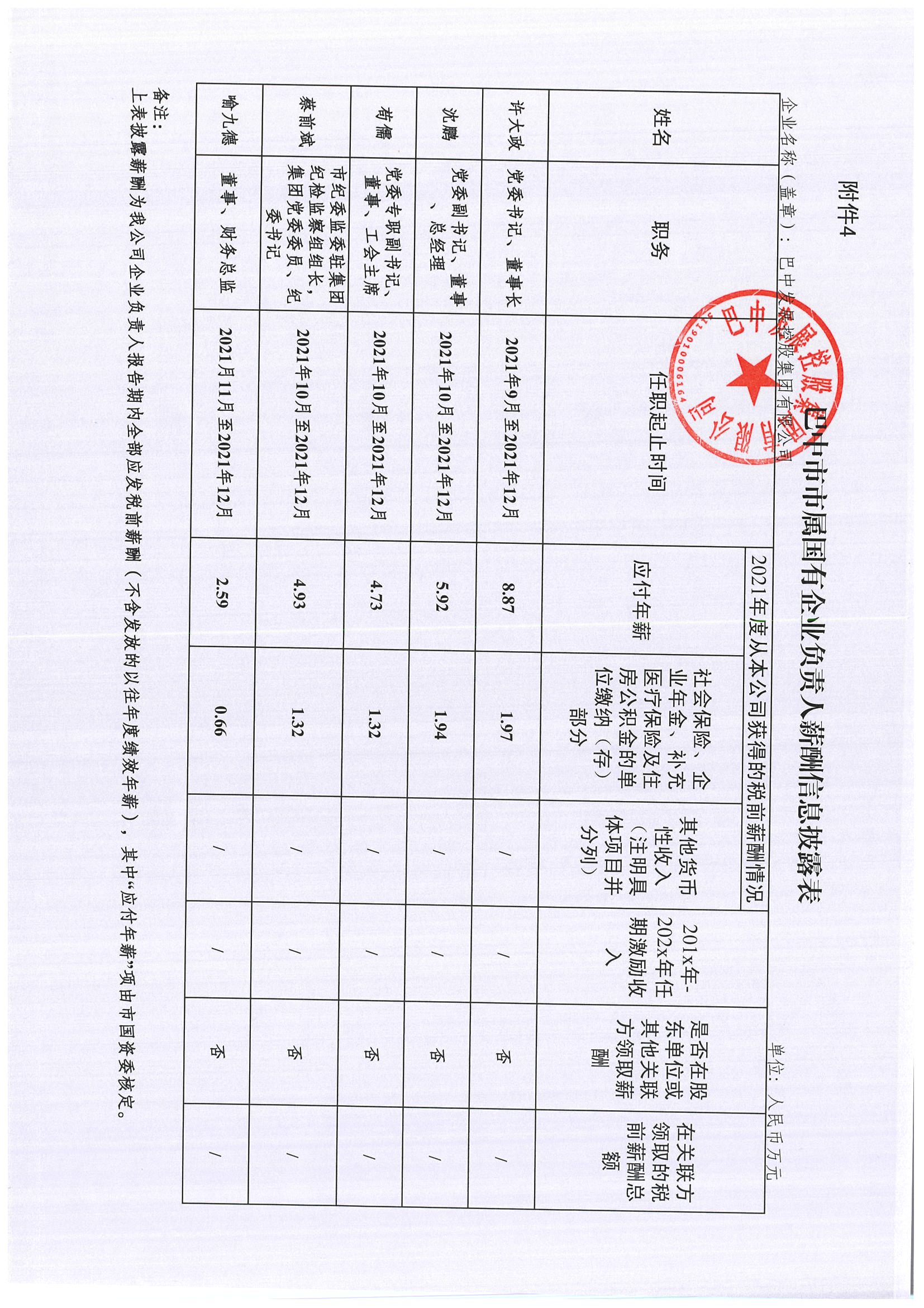巴中市市屬國(guó)有企業(yè)負(fù)責(zé)人薪酬信息披露表