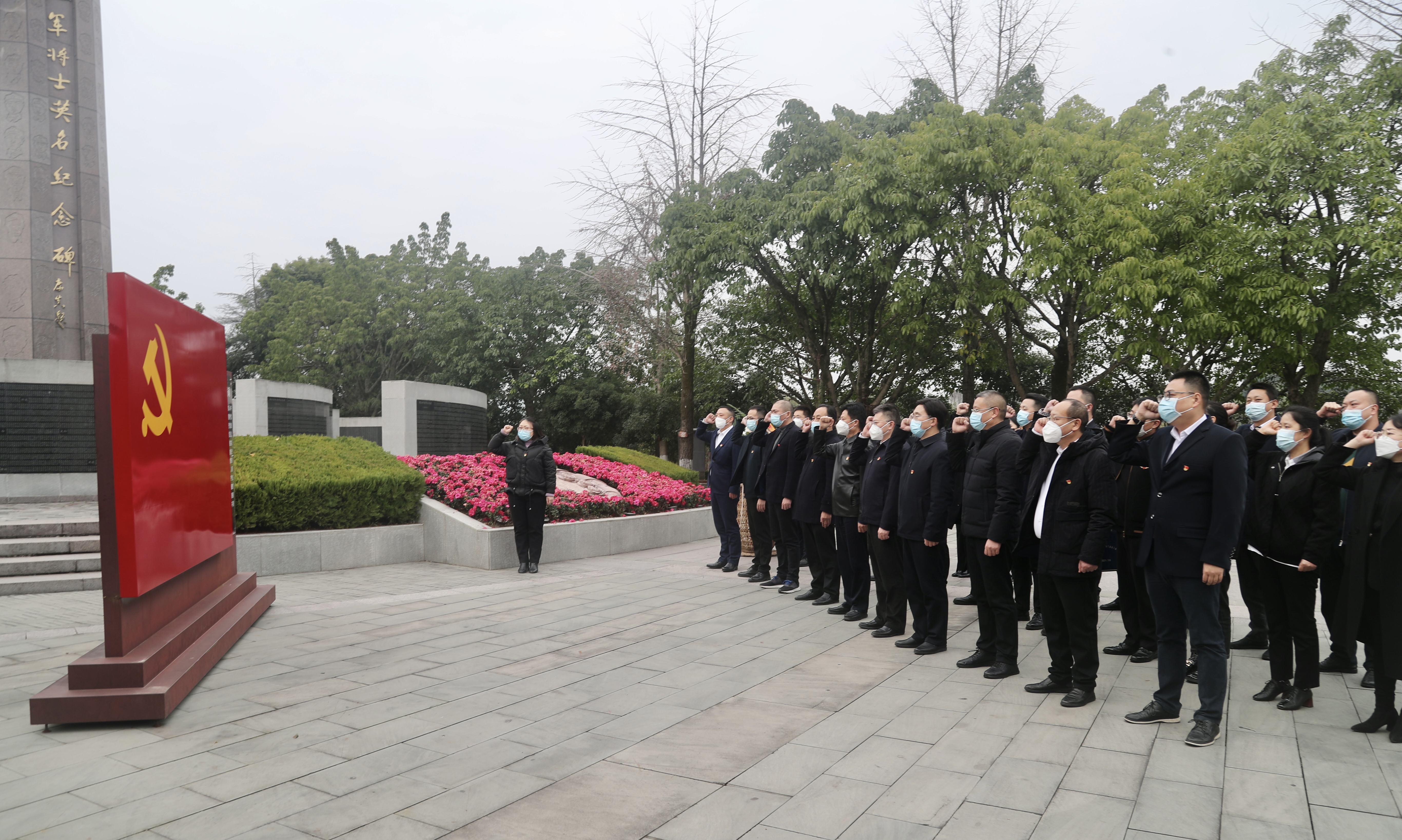 敬獻(xiàn)鮮花緬懷英烈——崇敬之心祭奠英魂。隨后,大家來到鐫刻著全國各地近10萬紅軍將士英名的川陜蘇區(qū)將帥碑林,在碑林正中央的英烈紀(jì)念廣場,大家莊嚴(yán)肅立,深情瞻仰英雄紀(jì)念碑;在講解員帶領(lǐng)下,集團(tuán)黨委書記、董事長許大政向前敬獻(xiàn)花籃、整理緞帶,大家集體向烈士默哀并三鞠躬,深切表達(dá)對革命烈士的崇敬之情。沿著紀(jì)念碑下方的英烈紀(jì)念墻,大家慢慢前行、靜靜端詳,一個個熟悉的地名、一個個陌生的名字,深深激蕩著大家的心靈。