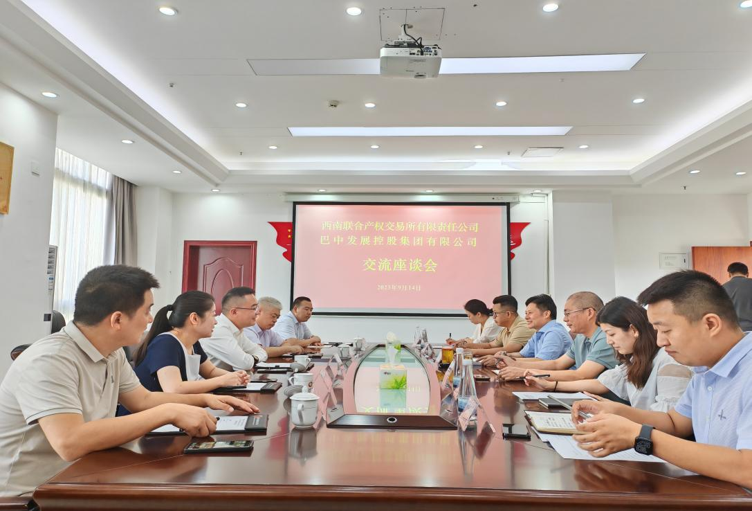 2023年9月14日上午,西南聯(lián)合產(chǎn)權(quán)交易所有限責(zé)任公司黨委副書記、董事、總經(jīng)理唐鵬程一行赴巴中發(fā)展集團開展交流座談。唐鵬程同志先到集團下屬企業(yè)巴中市鑫匯信息服務(wù)有限公司進行了調(diào)研指導(dǎo)。集團公司黨委書記、董事長許大政主持召開交流座談會,集團公司黨委委員、副總經(jīng)理劉仕勇,人力資源部、規(guī)劃發(fā)展部、巴中市鑫匯金融服務(wù)有限公司、巴中市鑫匯信息服務(wù)有限公司相關(guān)人員參加會議。